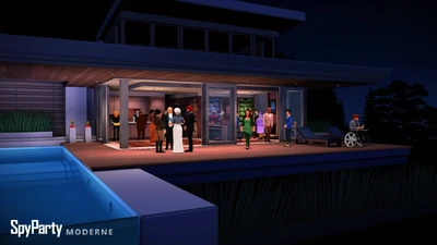 Moderne is a SpyParty map that became available at the game's Steam early access release. It is a modification of the now-defunct Modern map. It is one of the maps (alongside Pub, Terrace, and Aquarium) to be released that has Toby in a bartender role.