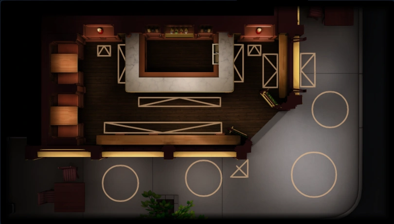 Purloin Guest List: This map uses the bartender mechanic instead of the waiter one. Getting a drink requires a partygoer to go to Toby at the bar instead of him coming to them.